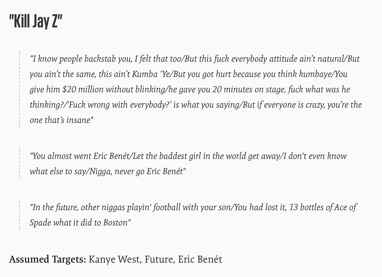 Baadhi ya mistari katika Ngoma ya Kill Jay Z